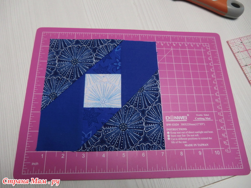 Выкраивала оба блока по №1. Первый блок шила по 4варианту, но по простой бумаге. Он сильно перекосился, и после подравнивания стал 6 дюймов. А второй шила №3, получился почти точно. Так что я (горемычная) попробую ещё раз, чтоб отточить своё мастерство.