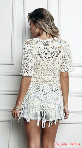 Эта туника выполнена из большого и средних мотивов 4-х видов! Треугольники квадраты и круги гармонично сочетаются в этой модели, а прекрасным дополнением является бахрома.