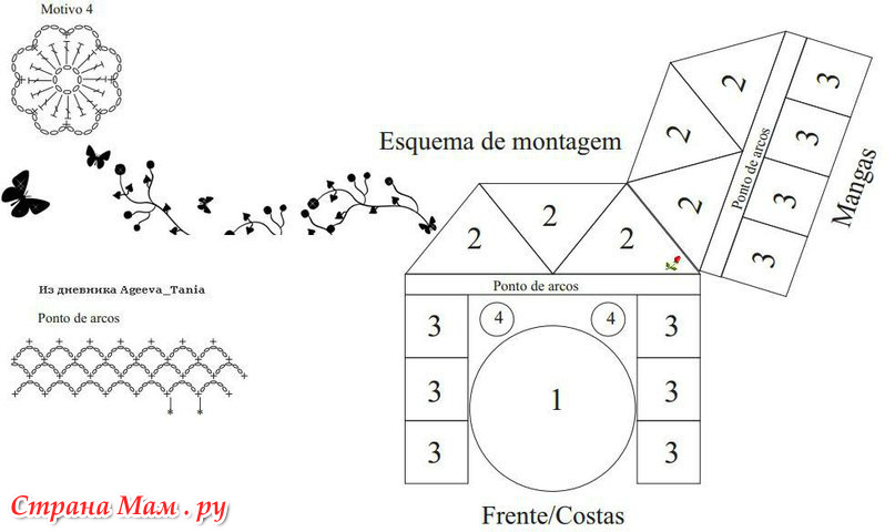 Эта туника выполнена из большого и средних мотивов 4-х видов! Треугольники квадраты и круги гармонично сочетаются в этой модели, а прекрасным дополнением является бахрома.