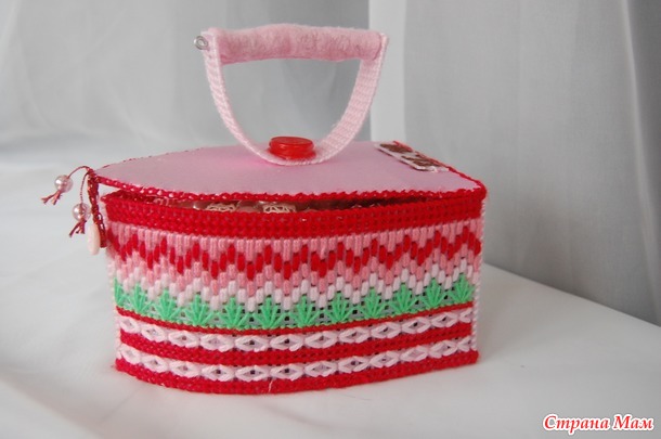 Для утюга потребовалось,; пластиковая канва( крупная), картон на дно и крышку, нитки акрил детская пехорка, бусы, ткань шёлк,