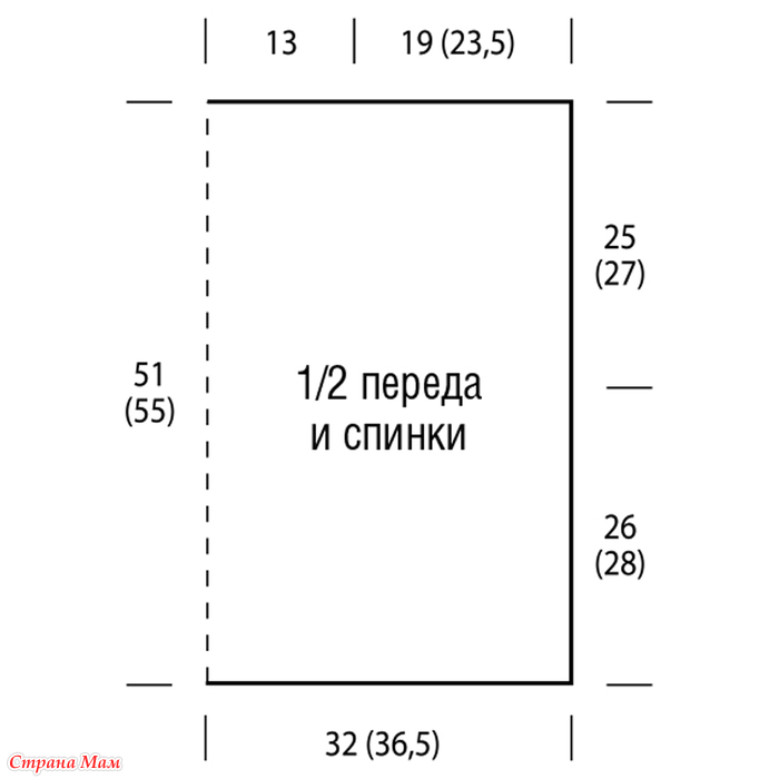 Через 26 (28) см от начального ряда отметить с обеих сторон крайнюю петлю для пройм.