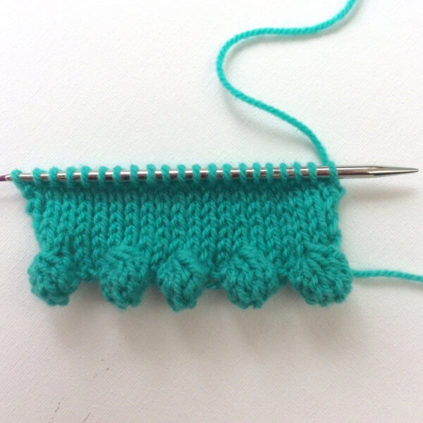 Нужно учитывать, что чем крупнее будут «шишечки», тем больше между ними нужно оставлять петель глади. Например, в данном мастер-классе каждая «шишечка» отделена от соседних тремя петлями.