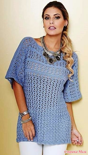 Ажурная туника голубого цвета