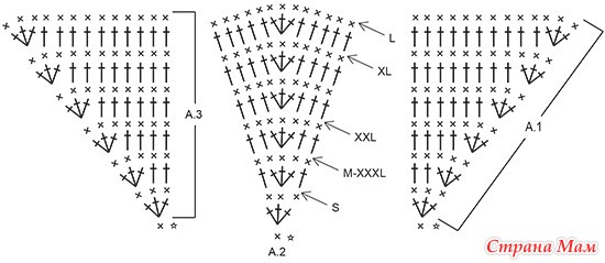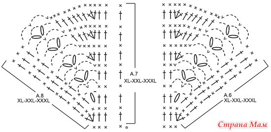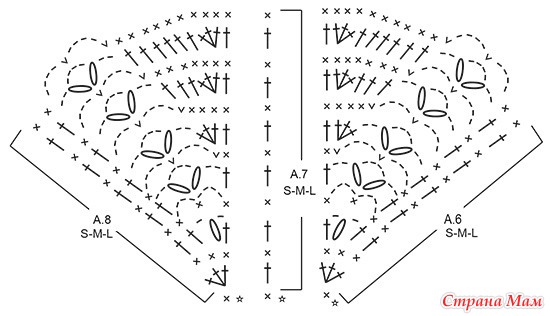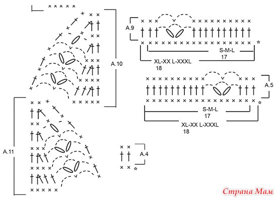 Схема узора: см. схемы A.1 - A.11. Выберите схему для вашего размера.
