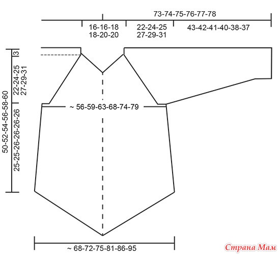 У вас должно быть ок. 71-77-83-93-103-109 ст.б/н (ст.с2н), включая петли подреза, + ок. 6-6-6-6-6-8 вееров на спинке и полочке = всего ок. 142-154-166-186-206-218 ст.б/н (ст.с2н) и ок. 12-12-12-12-12-16 вееров.