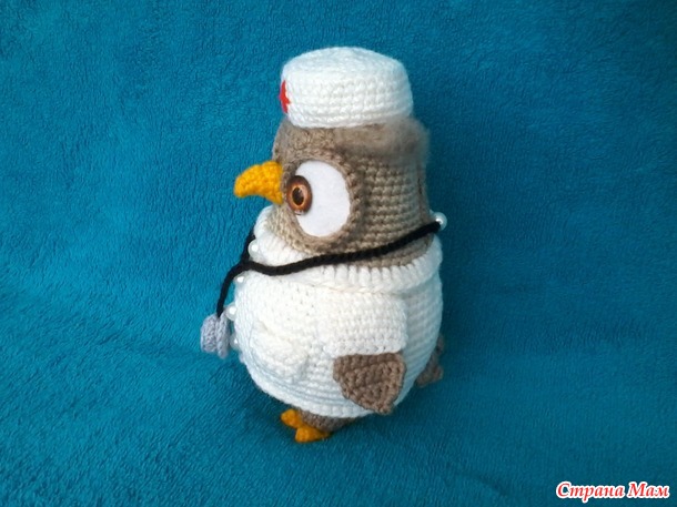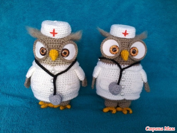 Продам вязаную игрушку Сова-доктор. Рост игрушки 16см, связана из де ского акрила, наполнена холофайбером, глазки стеклянные, стоит самостоятельно. Цена 800 рублей. Читать полностью