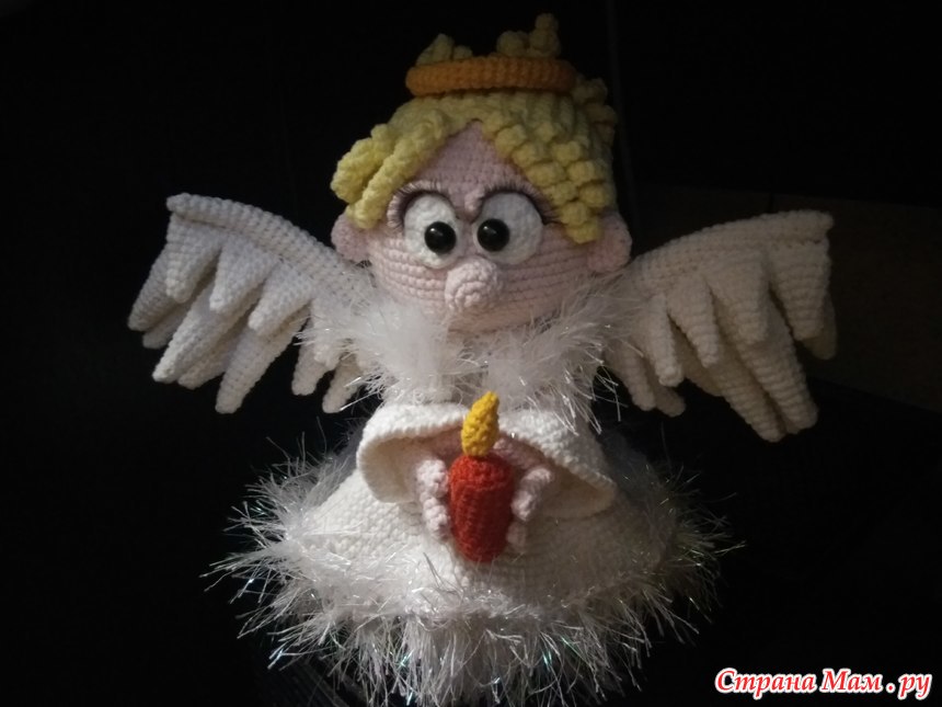 Добрый день, дорогие рукодельницы! Получился у меня вот такой Ангелочек. Описание Dinegurumi. Вязала из Джинса от ЯрнАрт, крючок 2. Рост 21 см. На фото не получилось передать всю нежность этого Ангелочка. Влюбилась я в него.