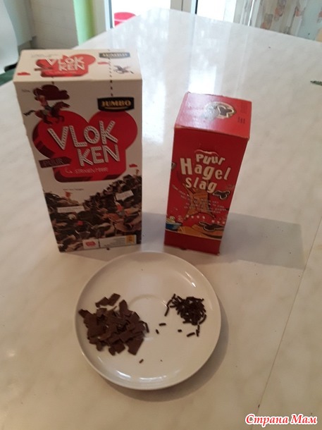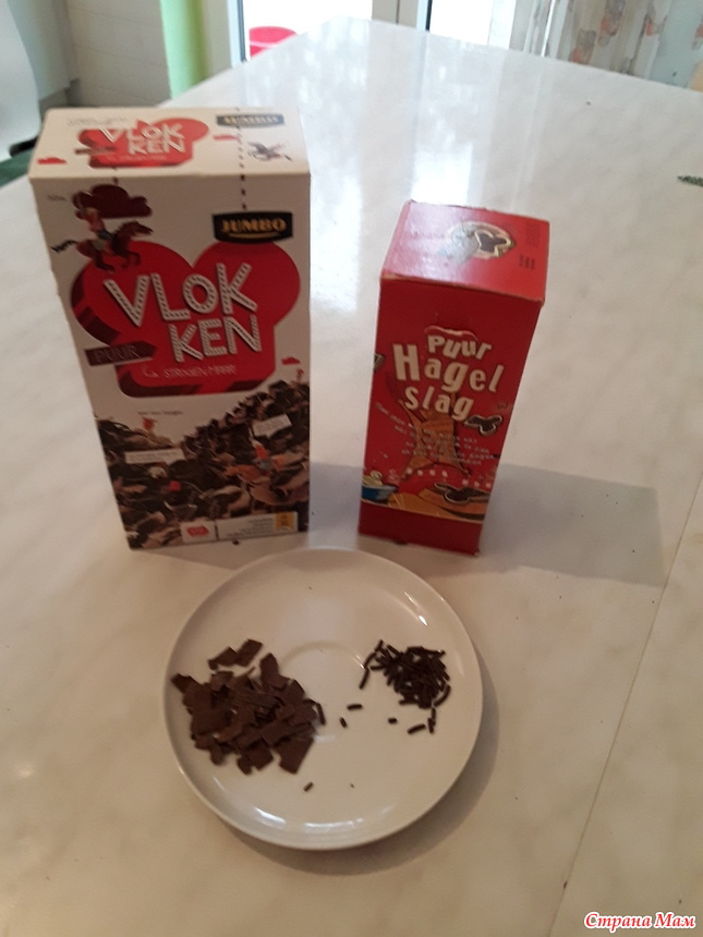 А шоколадную стружку hagelslag дети кушают: на белый хлеб слегка маслом смазать: масло чтобы чтобы шоколад не падал. Посыпать шоколадом, наверх еще кусочек хлеба.