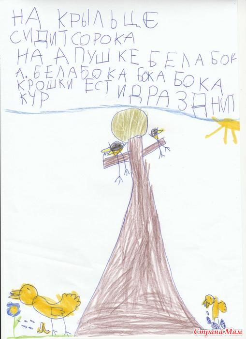 Она нарисовала слона в комнате, мальчика, ноты и скрипичный ключ(хотела еще скрипку изобразить, но места не хватило) и сказала, что они стали заниматься музыкой.