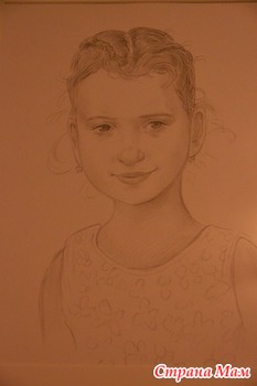 В теме мой портрет, нарисованый дочкой. В обсуждениях - фотография дочки и ее же портрет сдаланый профессиональным художником.