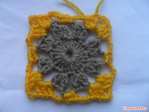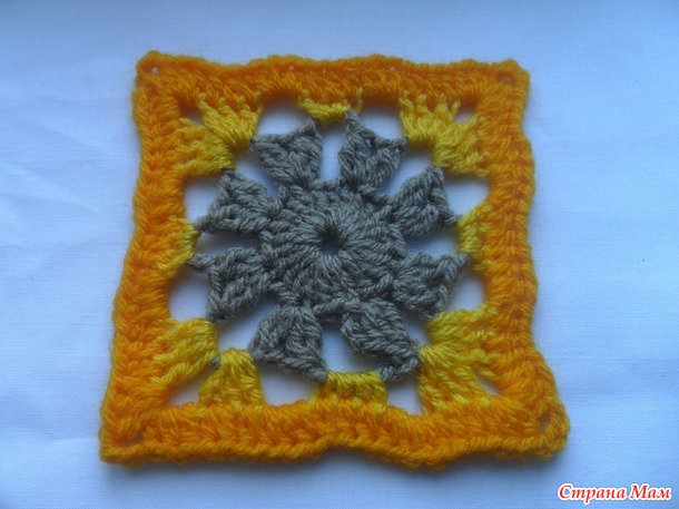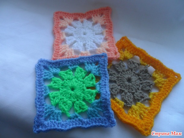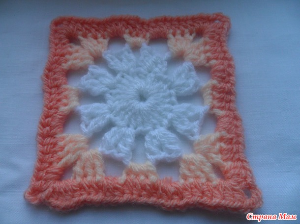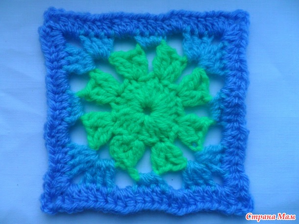 Размер мотива у всех будет разный. Он зависит от пряжи,размера крючка и плотности вашего вязания.