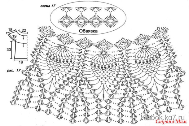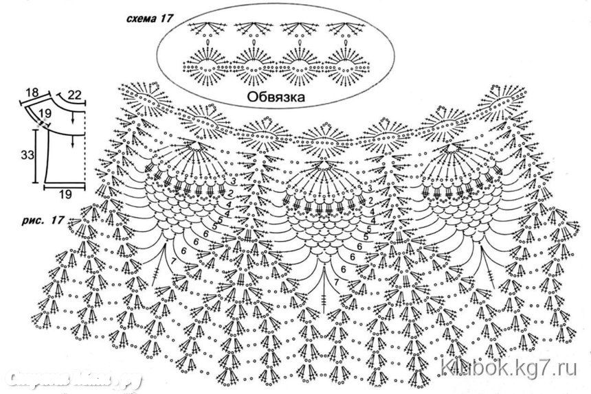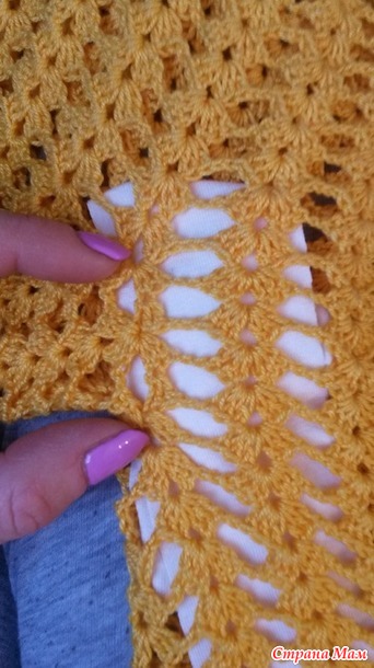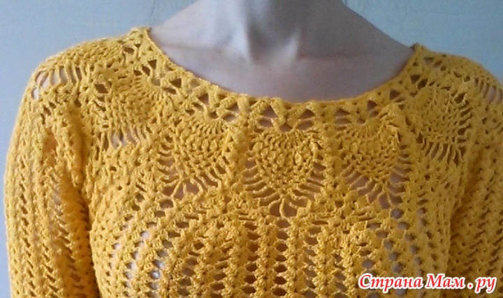 А расширение к низу кофточки - наверное, получилось за счёт того, что рисунок по центру не как в оригинале