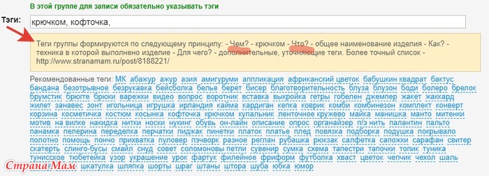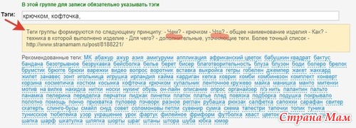 Одно замечание: в нашей группе первое слово в тэгах - крючком.