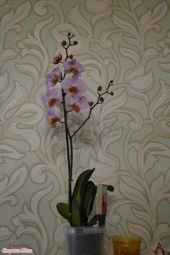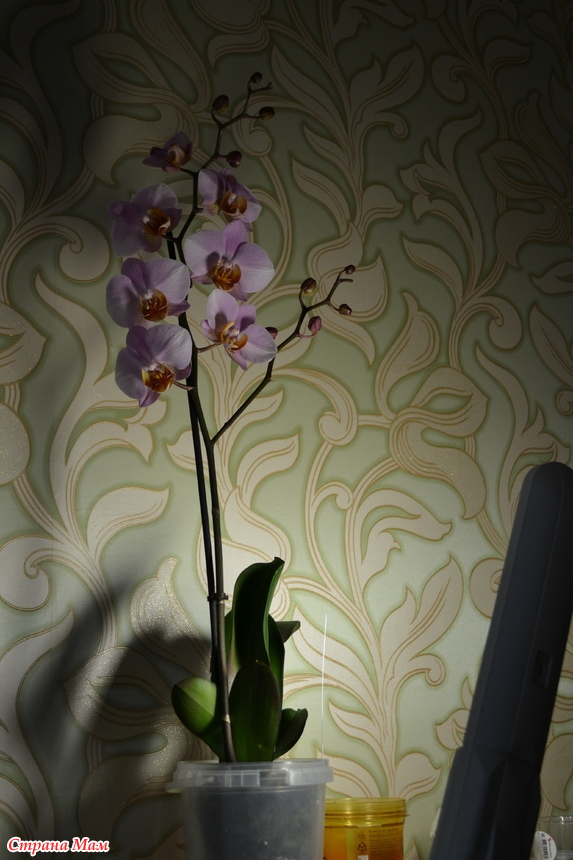 Переглянулись с оденькой и...зашли вновь . Да сразу же к орхидеям. Мучатся с выбором уже не пришлось. Одну из понравившихся кто то купил. А вторую я уже не раздумывая взяла с полки. Упаковала её в бумагу как в кокон. Конечно же такси вызвала. Довезла в лучшем виде ! Уже дома нашла её название - Ченгду. Хотя орхоманы со стажем могут и поправить меня. и вот её фото . При разном освещении.Цветочек высокий. Вернее цветонос. От уровня грунта до верхнего бутона 53 см.