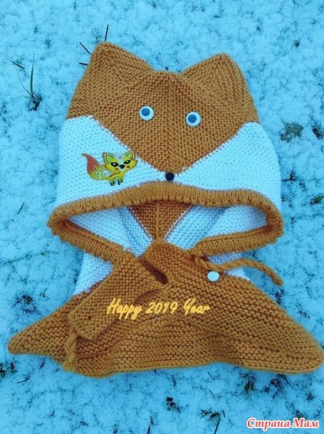 Это уже вторая шапочка "Лисичка".Заказ моей внучки Ларочки. Первую носит внучка Анечка.Описание работы в моем дневнике на Лиру.Полушерсть турецкая,150 грамм ушло.Цвет на фото некрасивый.Настоящий -апельсиновый,сочный.