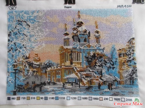 Сняла снапы, дошиваю верхний край на пяльцах. Общий вид за почти полгода вышивания: