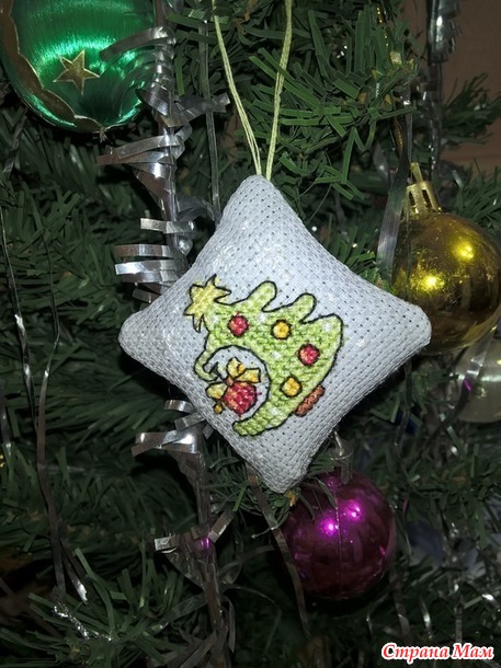 а за эти дни у меня вышит новогодний шарик. Вот его черновое фото