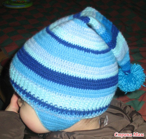 Связала сыну вот такую шапочку крючком.