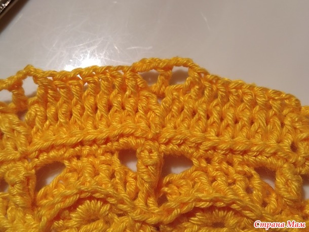 конца ряда : в первую арку СБН , во вторую 7ССН, в третью СБН. В конце ряда соед . петля в начальный СБН.