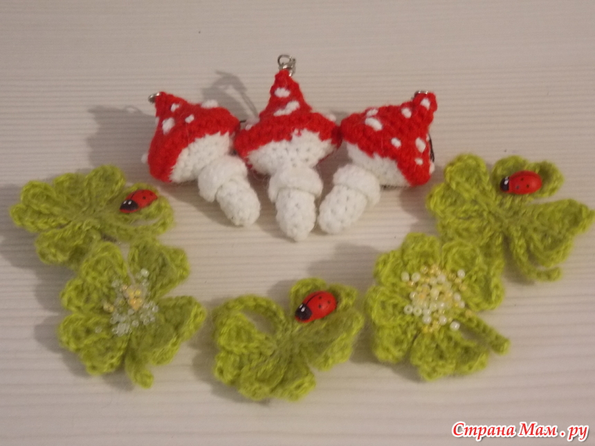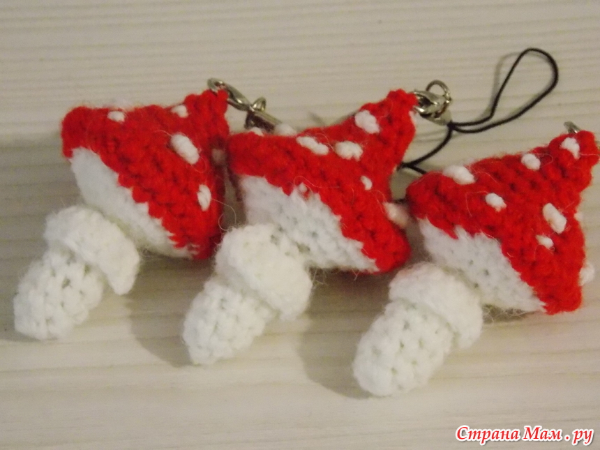 Мухоморчики сделаны как брелки, но можно и на булавку...