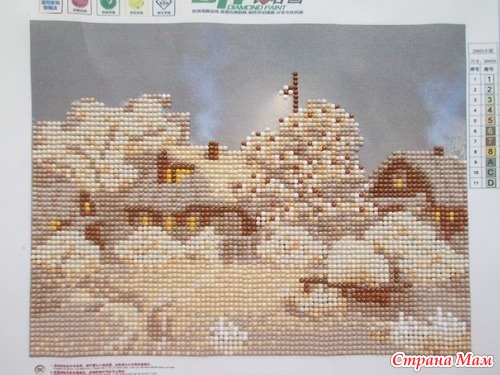 Так как схема нанесена на художественный холст, то держать в руках трудно. Потому натянула на рамочку, какую в доме нашла и закрепила степлером. Так что рамка там не для красоты, а для удобства. Номера бисера, предложенные производителем не меняла. Вроде смотрится не плохо...