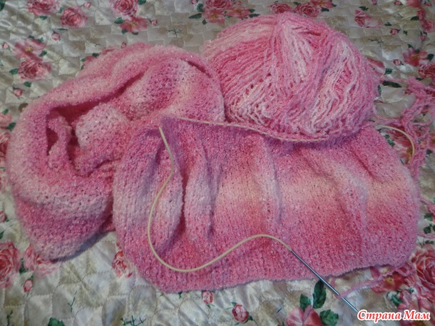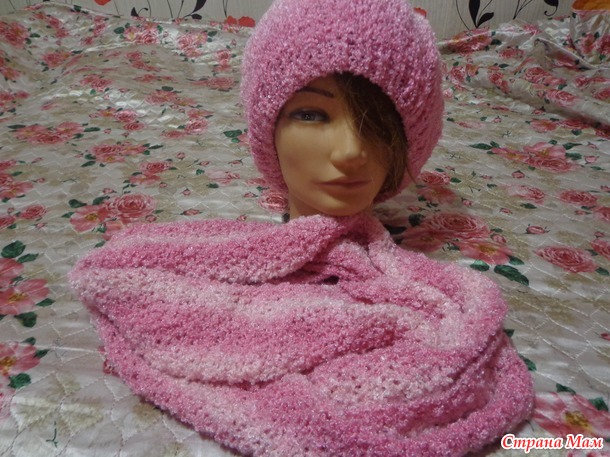 Вязала розовый снуд в два оборота и берет. Снуд вязала "путанкой", берет лицевой гладью.
