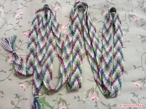 Ну а тут уже руки не выдержали, как схватили ниточки, как давай плести. 3 с половиной метра пояс, из них 2 с половиной сплетено в больнице. Ко мне там экскурсии ходили смотреть что я делаю.