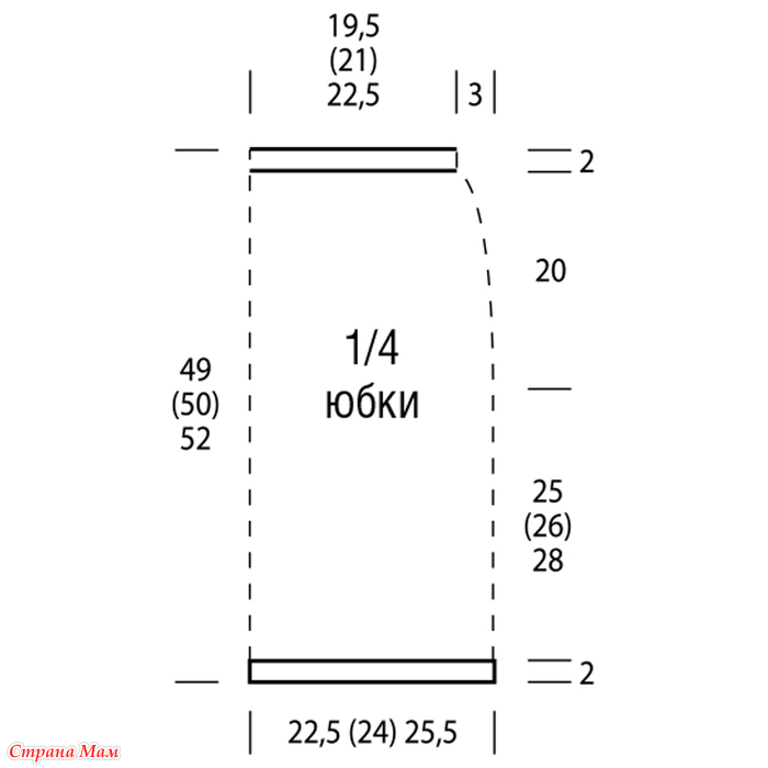 Через 27 (28) 30 см от начального ряда выполнить боковые убавления согл. выкройке.