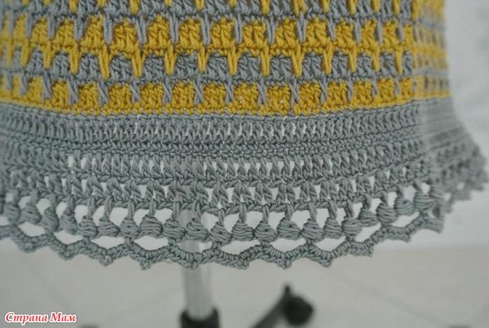 Через 47 (48) 50 см от начального ряда провязать еще 2 см ст. б/н серой нитью, затем работу закончить.