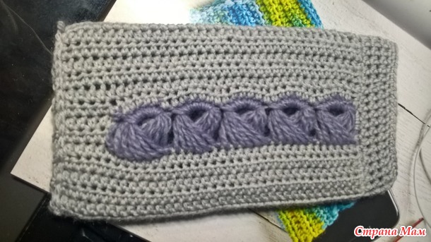 Второй чехол. Вязала по описанию из книги "Модели в технике брумстик" Лайлы Вагнер. Вязала поперек. По длине чехол оказался коротковат, поэтому надвязала по кругу. Пряжа "Водопад", крючок 3мм.