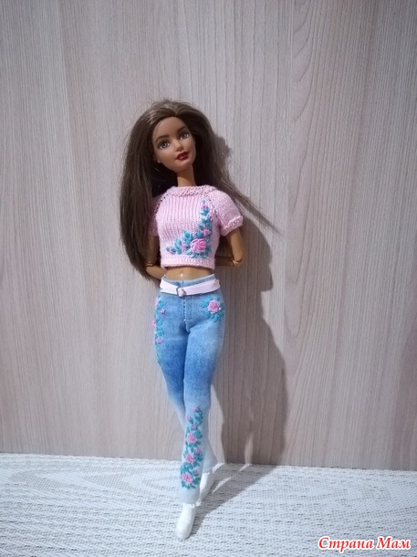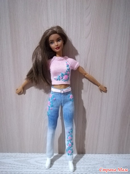 Всем привет! Хочу показать обновки для кукол Барби. Первым связала платье для Барби пышки.Украсила вышивкой рококо. Сшила джинсы и связала кроп топ как обычно украсила вышивкой Всем добра! Читать полностью