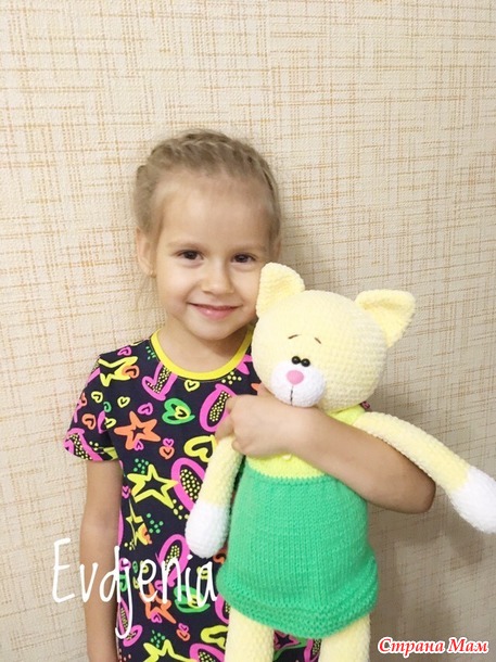 А ещё при желании вы сможете одеть эту игрушку в платье или комбинезон, связанные спицами и ребёнок точно будет счастлив!