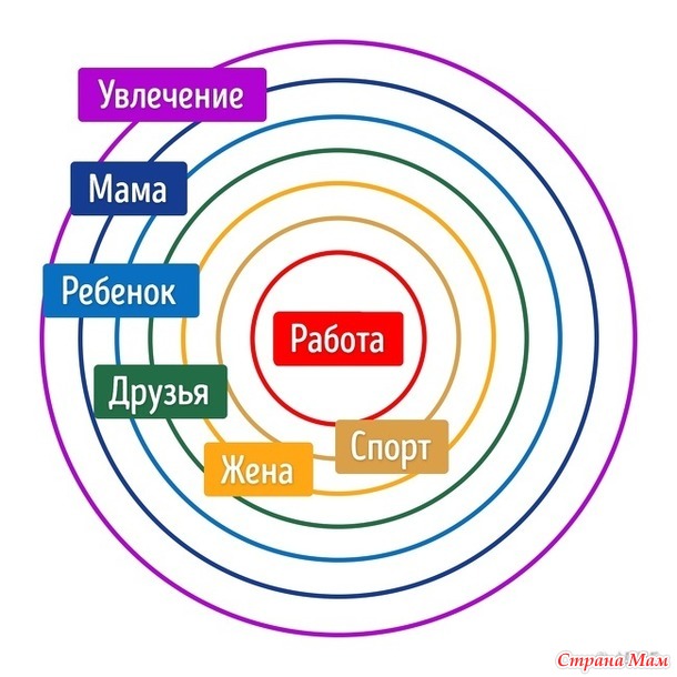 5-й, 6-й, 7-й круги: в этих кругах могут быть родственники, друзья, работа, хобби, домашние питомцы и еще множество иных составляющих, которыми заполнена ваша жизнь.