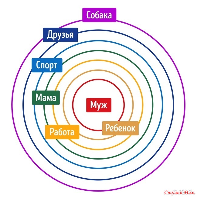 5-й, 6-й, 7-й круги: в этих кругах могут быть родственники, друзья, работа, хобби, домашние питомцы и еще множество иных составляющих, которыми заполнена ваша жизнь.