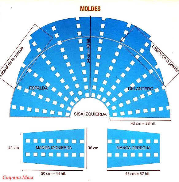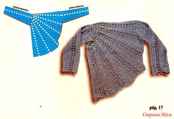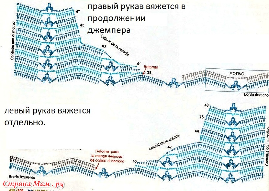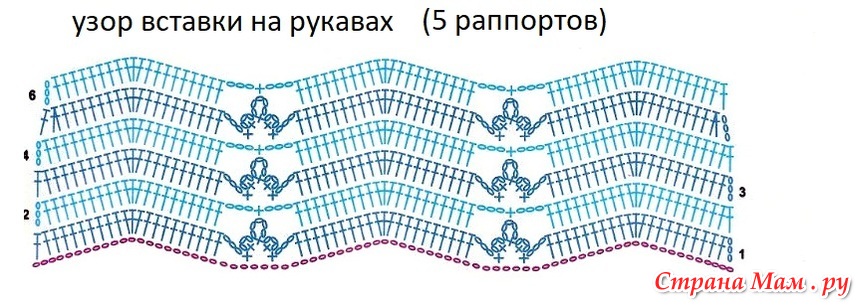 Узор сегментированный и идет от проймы а затем переходит в цельнокроенный рукав.