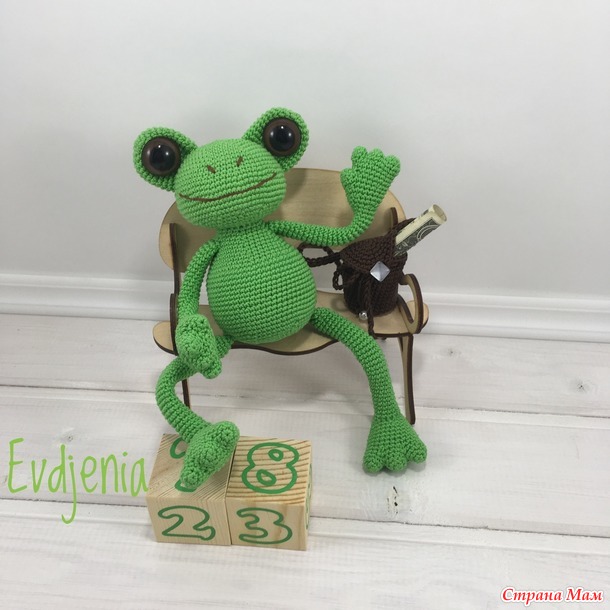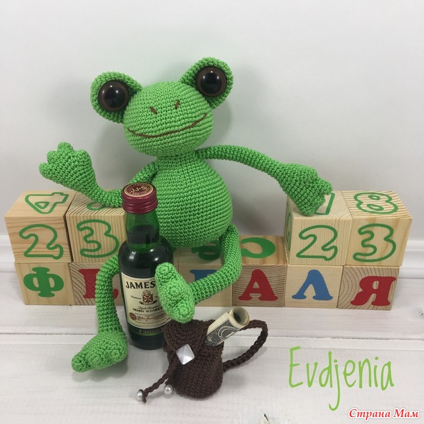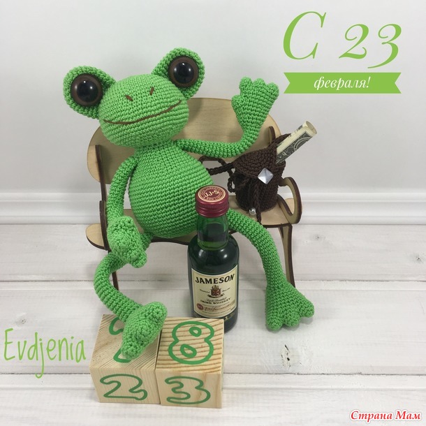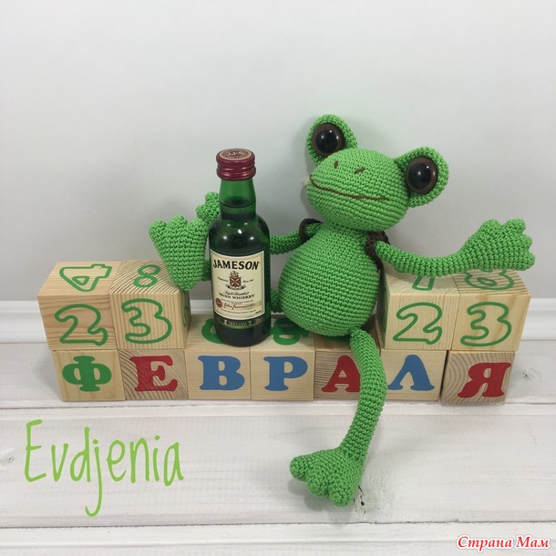 Обиделась, но лягушку всё-таки доделала, такую как ему надо и подарила ему сегодня на праздник, на день защитника. Но он её пока в офис не унёс, сказал, что унесёт в понедельник...