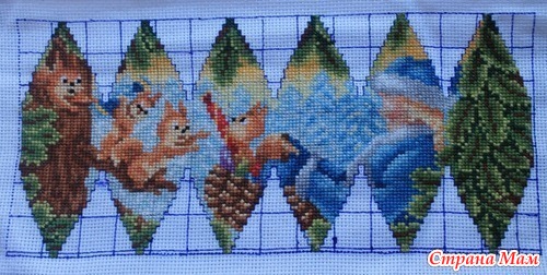 По моей сове отчет, может и не видно прогресса. Я вышиваю по цветам. да еще те участки, которые мне больше нравятся. И получается остаются мелкие незашитые места, всего несколько крестиков. Я их так не люблю! Но приходится возвращаться к из зашитию, вот и на этой неделе этим занималась