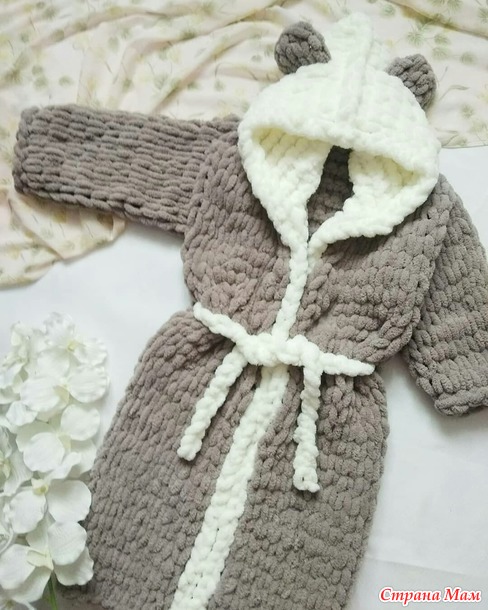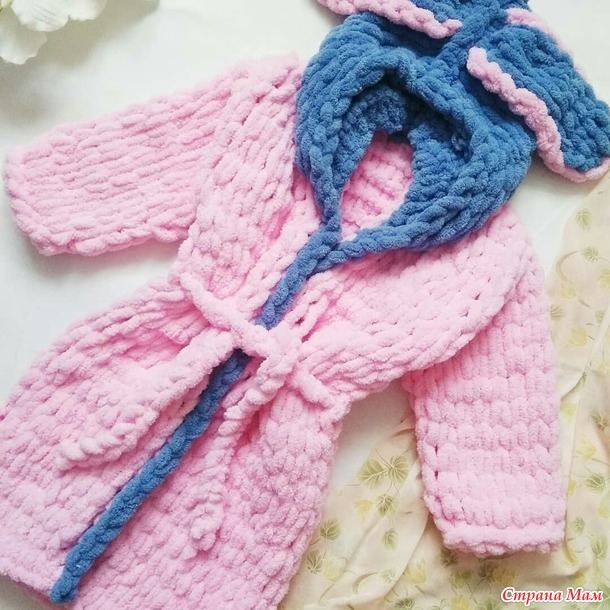 Продаю МК по вязанию плюшевых халатик из пряжи Ализе Пуффи без спиц и крючка.