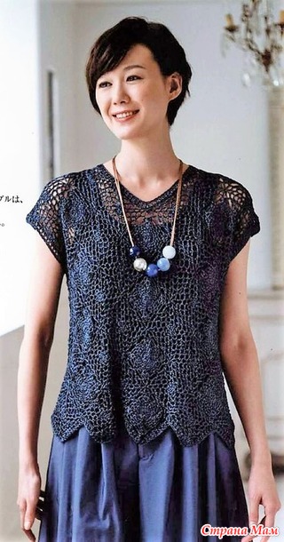 Летний топ связанный из ажурных мотивов способом безорывного вязания. Крючок.