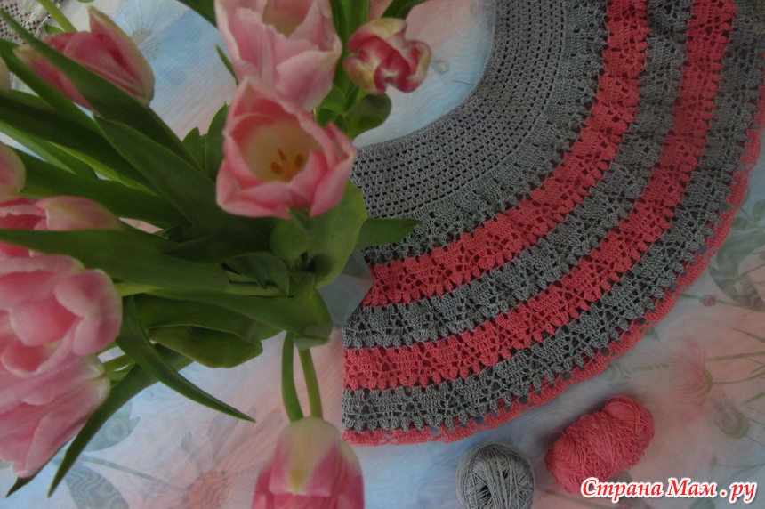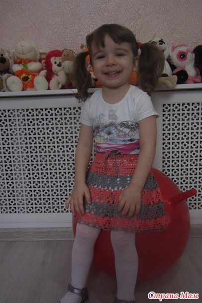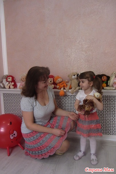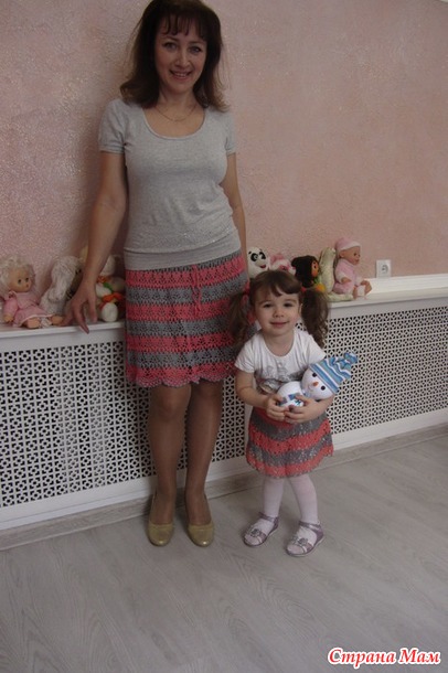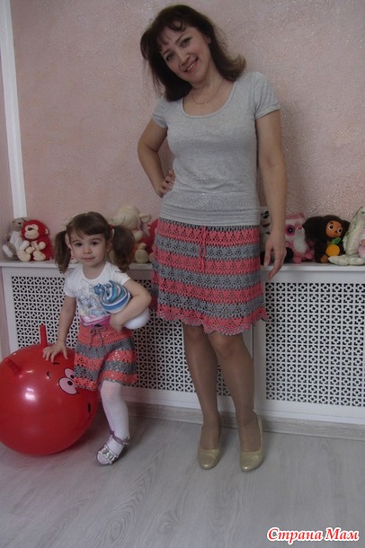 Детскую юбочку вязала строго по схеме, кроме кокетки и каймы, а вот взрослую юбку вязала, немного изменив схему, добавила пышные столбики