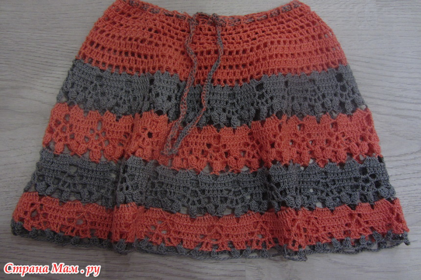 Ну и решила утилизировать остатки ниток, поэтому юбочки у меня не однотонные.