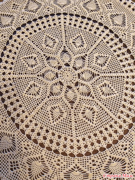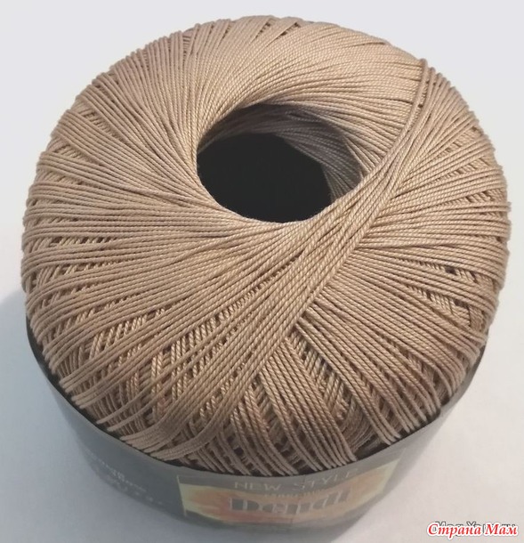 Первая скатерть связана из пряжи Камтекс «Денди». Состав: мерсеризованный хлопок (100 %), 50 гр./330 м. Тон 06 - светло-бежевый . Тонкая нить очень послушна в работе, идеально подходит для нежных, ажурных вещей, держит сложный узор. Уход за изделиями из пряжи «Денди» стандартный — бережная стирка, сушка в расправленном виде. Даже при многократных стирках краски сохраняют яркость, изделие не растягивается, не теряет блеск.