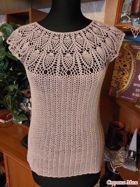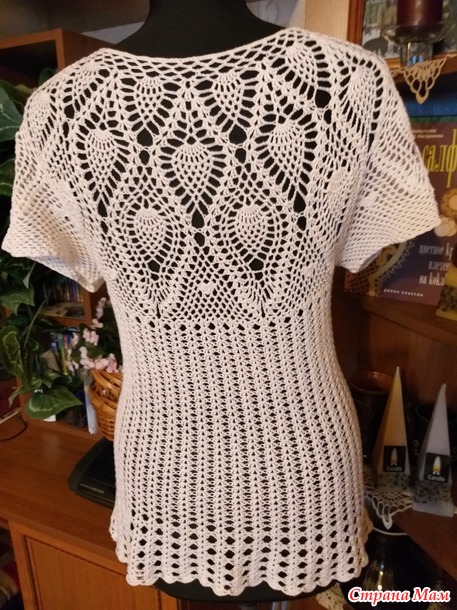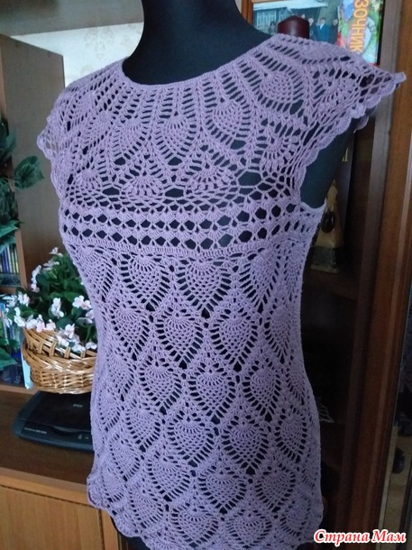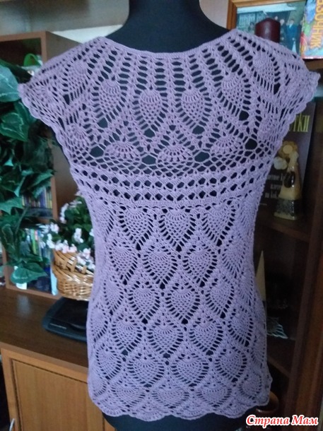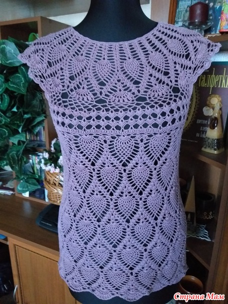 Хочу показать три моих кофточки связанных крючком узором "ананас". Мне этот узор очень нравится, и я часто его использую. Все три кофточки связаны сверху вниз с круглой кокеткой.