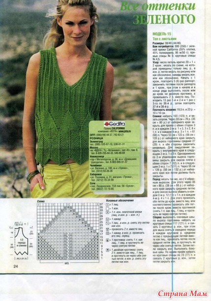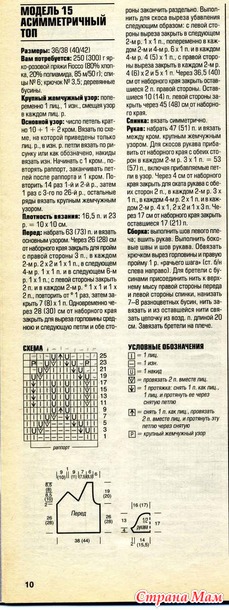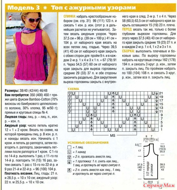 Для вязания этого топа использовала схемы из журнала "Вязание ваше хобби 7/2006"