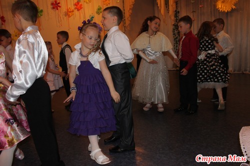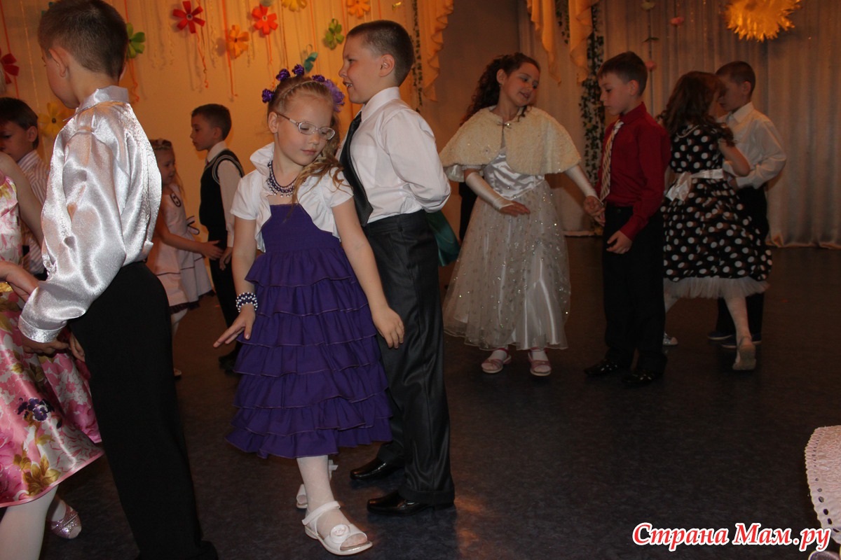 Дамы из род комитета решили, что все девочки должны быть в одинаковых платьях. Фасон одинаковый, цвет разный. Мальчики - черные брюки, белая рубашка и галстук "в цвет своей девочки".