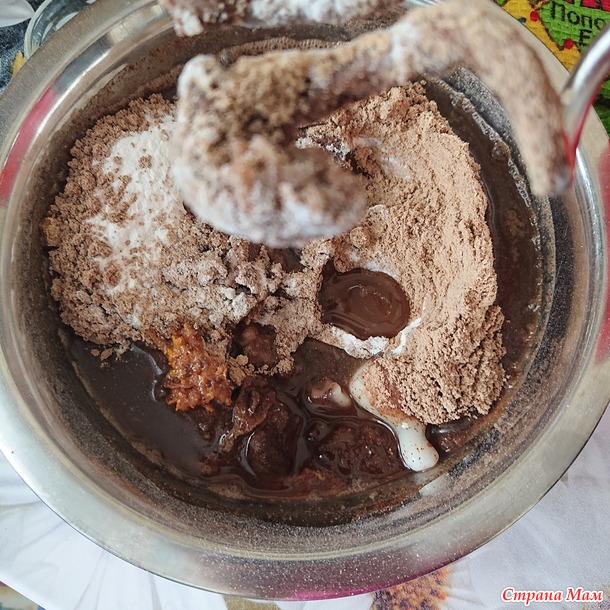 3. Отдельно топим масло и добавляем к сухой смеси. Тщательно перемешиваем, как бы втирая масло в сухую смесь.