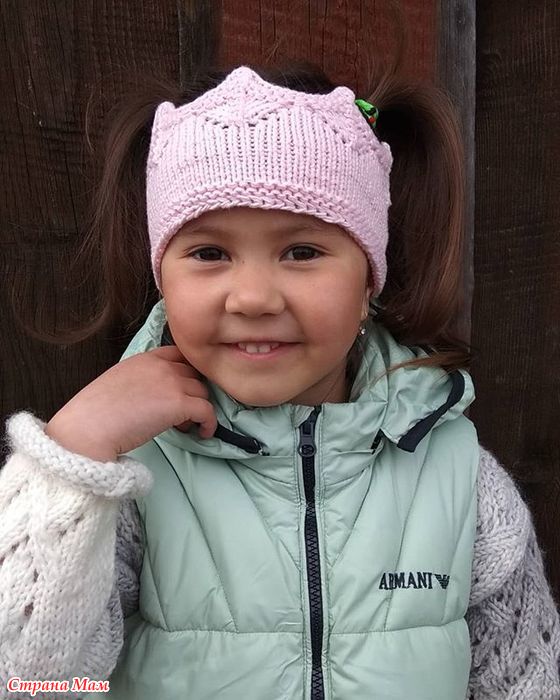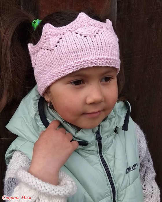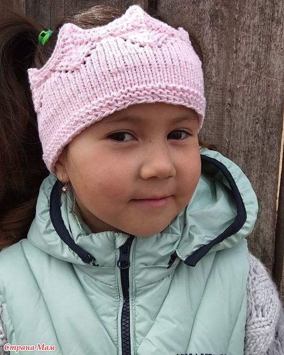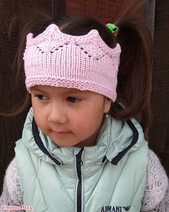 Еще связалась вот такая повязочка-корона для нашей "калалевы". Вязала из Газзал бэби коттон в две ниточки,спицами №5,5,ушло полмоточка.