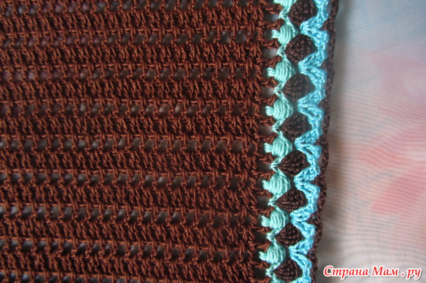 потом каждую сторону прямоугольника обвязала орнаментальной полосой и продолжила вязание