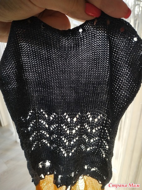 По низу переда и спинки обычный ажур по стандартной пФ, по верху переда тоже ажур. Напуск примерно 15 см.
