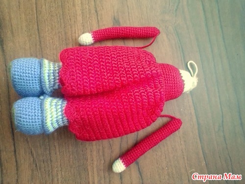 Надеваем гетры на ножки и прихватываем их снизу.